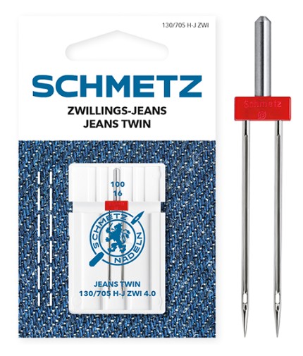Avec l’Aiguille Double Jeans, vous donnez un look authentique et professionnel aux coutures de vos jeans et autres vêtements en denim, même sans machine spéciale : Sur votre machine à coudre familiale standard, vous pouvez réaliser simultanément deux coutures écartées de 4 mm à l’aide de deux fils supérieurs sur le dessus.
